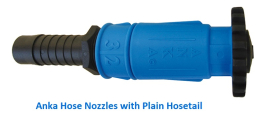 Anka Hose Nozzles with Plain Hosetail are strong and robust with a quick action on/off movement to a fully adjustable spray pattern. This gives very high flow rates to insure a fast wash-down time.