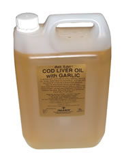 A complementary feedstuff containing a veterinary mixture of cod liver oil, marine oil, pure vegetable oils & garlic. A stabilised source of vitamins for general health and condition plus the well documented properties of garlic. Idea; for show stock, oung and pregnant animals. An energy source, reduces dust and improves palatability of feed.