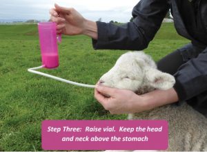 Ensure the head and neck of the lamb or kid stays above stomach level.